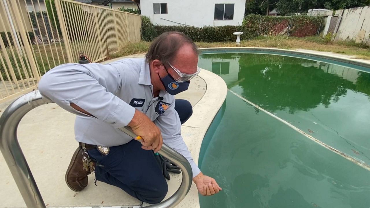 Alan O’Connell, a vector control specialist with the Greater LA County Vector Control District, has spent 27 years ensuring standing pools of water are either treated or emptied to cut down on breeding grounds for mosquitos. The district reports at least one person has been infected with West Nile virus this year and at least 19 mosquitos have tested positive. According to O’Connell, it’s best to empty standing water from any containers to stop the mosquito life cycle, which can last from five to seven days.